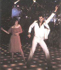 Ladies also liked big hoop earrings (hoops are making a comeback by the way!) and head kerchiefs. Those went well with that peasant look. As the disco craze heated up, tube tops became cool, and flared skirts and dresses. Take a look at the picture of John Travolta and Karen Lynn Gorney from "Saturday Night Fever" for an idea of how one might have dressed to go out to the disco.